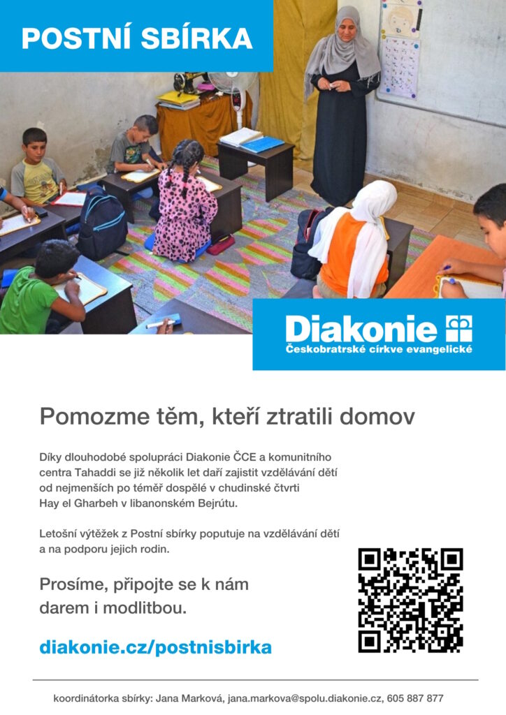 Dnes je Popeleční středa, tedy dneškem začíná postní doba před Velikonocemi. Ať už chcete postní dobu strávit jakýmkoli způsobem, přejeme vám hodně sil, inspirace a usebrání. A dáváme vědět, že začíná také letošní postní sbírka Diakonie ČCE. Výtěžek sbírky letos pomůže dětem uprchlíků ze Sýrie a zranitelným libanonským rodinám v chudinské čtvrti Hay el Gharbeh na okraji Bejrútu.